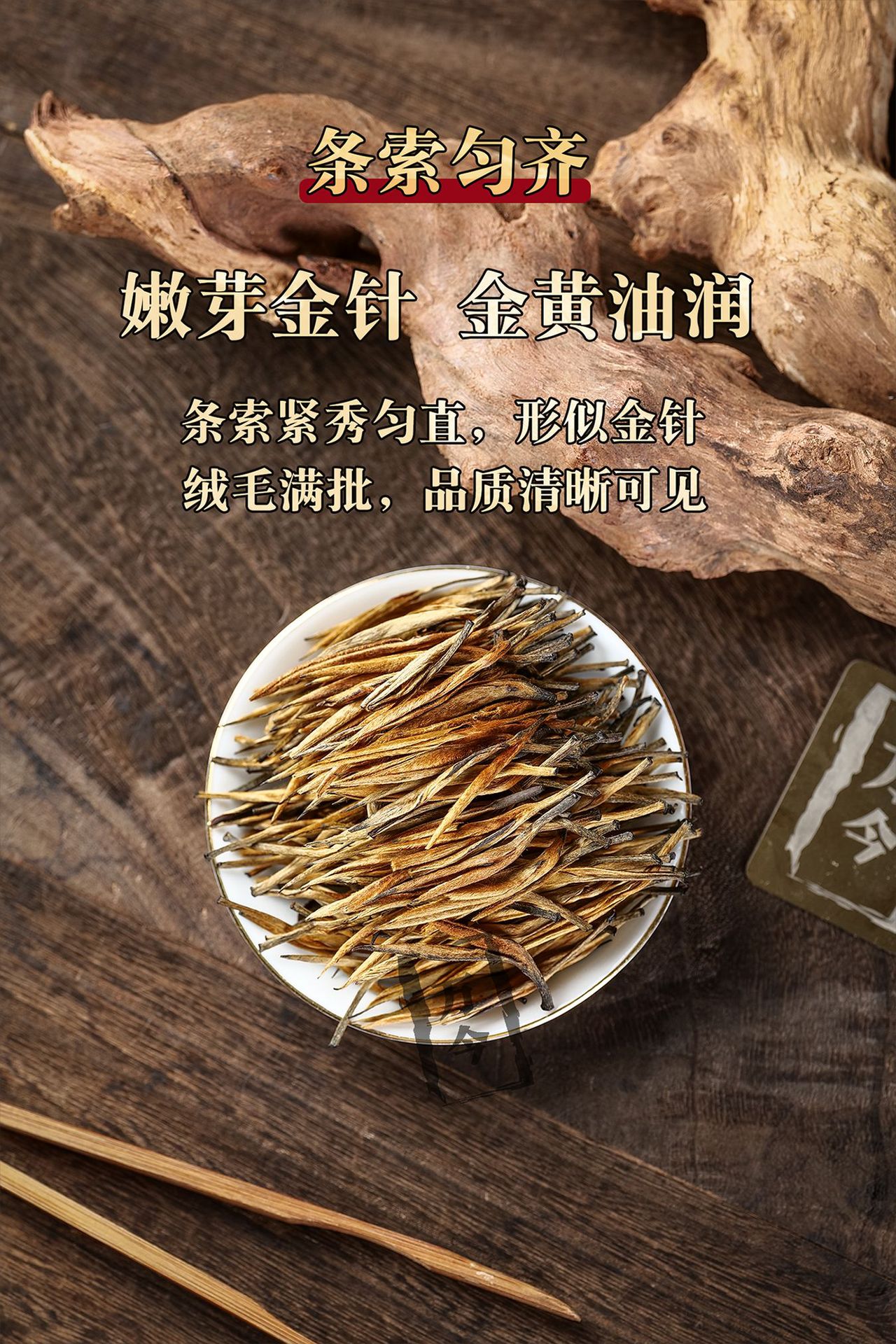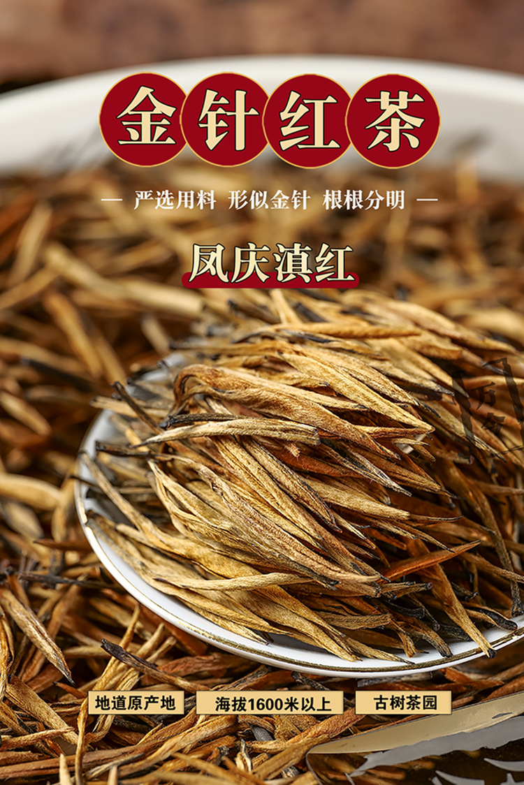 凤庆滇红 大金针红茶 嫩芽金针 金黄油润 绒毛满批 品质清晰可见