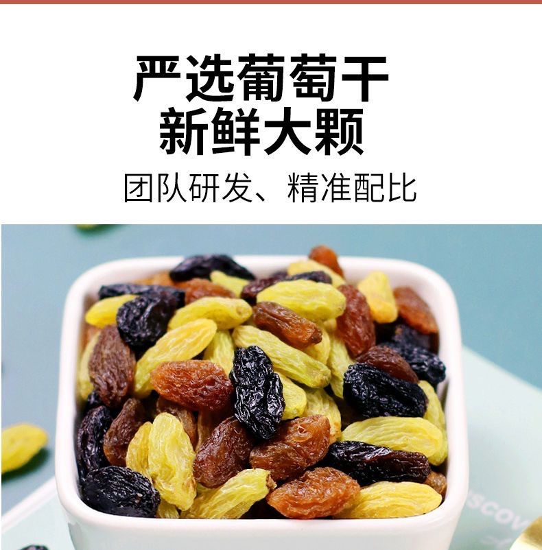鲜记【金标罐装】三色葡萄干468g蜜饯果干新疆无核红提黑加仑果脯