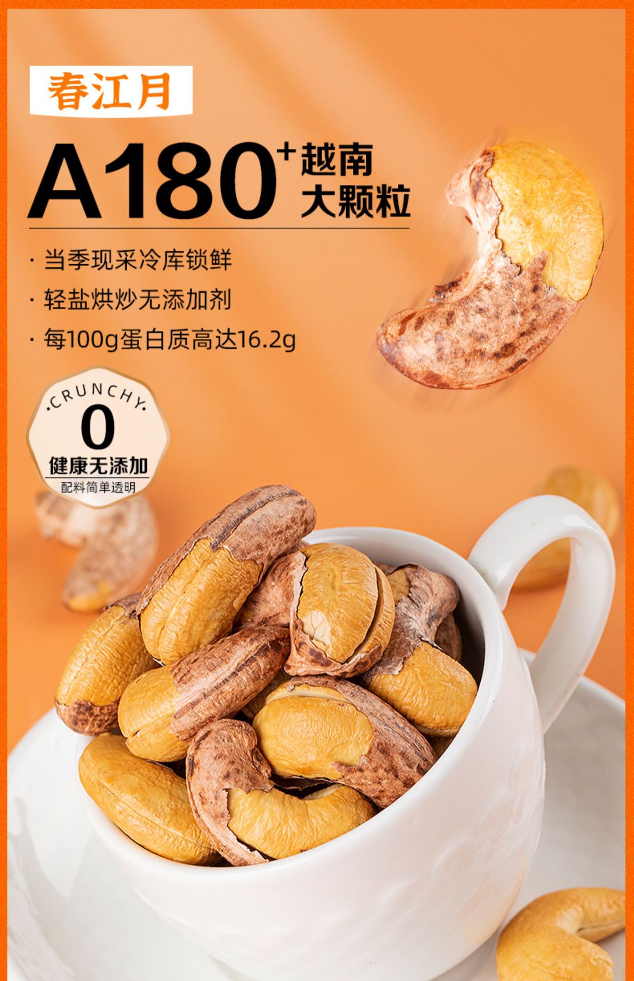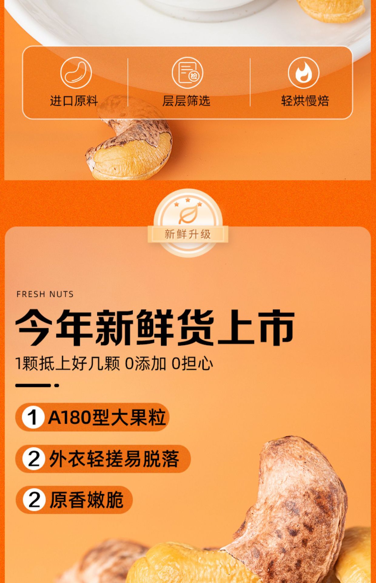 2023年新带皮腰果仁500g大颗粒越南盐焗特紫衣级坚果孕妇零食批发