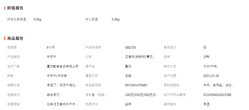 【产品简介】: 龙帮风干牛肉500克袋装