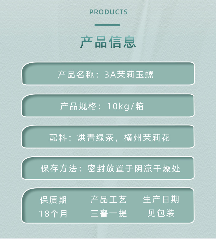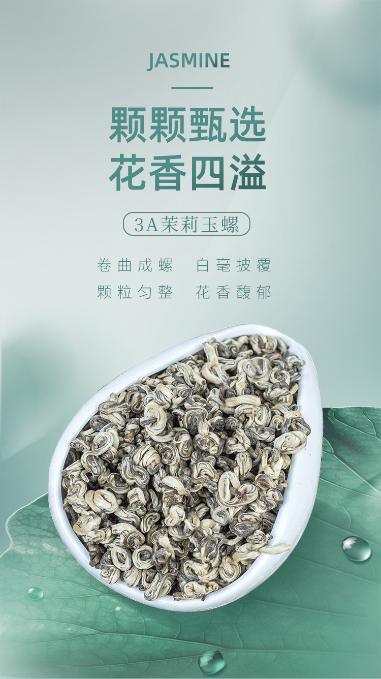 茉莉白玉螺特级浓香型茉莉花茶2023新茶白毫绿茶叶香碧螺 花茶横州