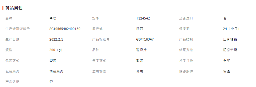 军农乳业 新疆骆驼奶片200g 儿童骆驼奶片独立包装零食 驼奶片200