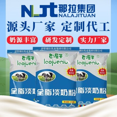 新疆那拉乳业老倔牛全脂淡奶粉320克牛奶粉工厂直发批发代理