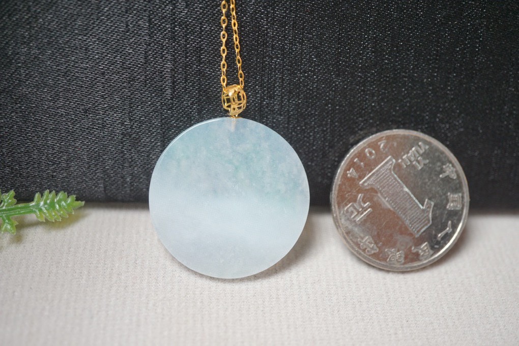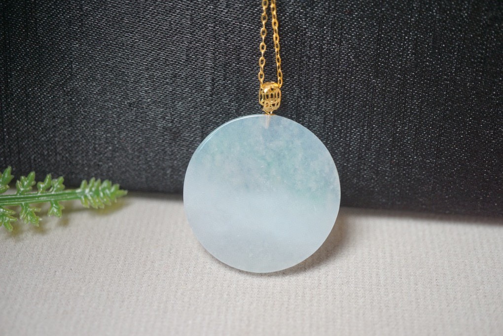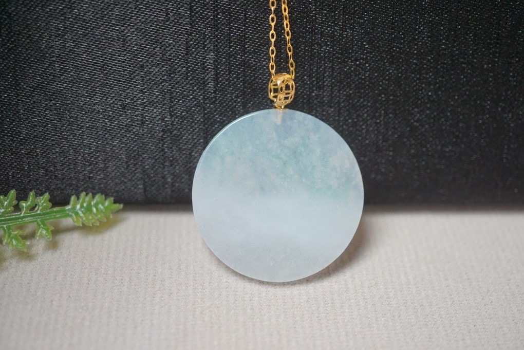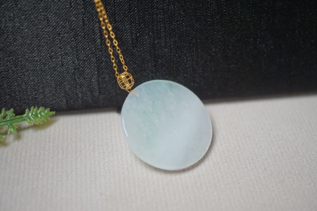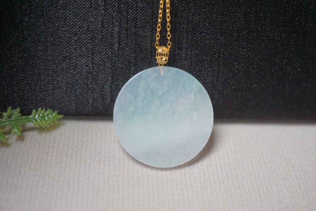 鄯善县砚玉堂玉器店发布的翡翠A货镶嵌平安扣冰种飘花吊坠挂件项链锁骨链珠宝首饰配饰图集库