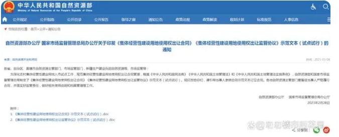 2023年,21世纪以来第20个指导“三农”工作的中央一号文件正式发布,奠定了今年重三农的基调。近日,自然资源部印发了《集体经营性建设用地使用权出让合同》、《集体经营性建设用地使用权出让监管协议》示范文本(试点试行)的通知。这对于农村集体经营性建设用地入市等方面进行明确。重点包括以下三点: