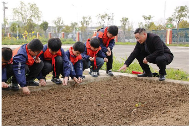 随后,同学们跟随专家的脚步,来到该校实验田,亲自感受传统播种方式,在实践中体会唐诗中咏诵的“春种一粒粟,秋收万颗子”的情怀。