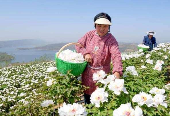 4月10日,在河南省洛阳市新安县仓头镇郭庄村牡丹种植基地,花农忙着采摘牡丹花。 眼下正是河南省洛阳市新安县仓头镇油用牡丹和食用牡丹收获的季节。该镇共种植油用牡丹和食用牡丹1500亩,主要用于牡丹茶、牡丹饼和牡丹精油等特色产品的深加工。通过牡丹种植,当地群众拓宽了增收致富的途径。 新华社发(张怡熙摄)