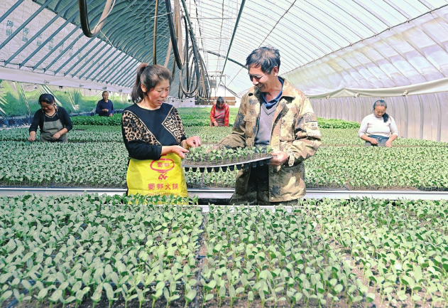 4月10日,临县碛口镇西头村临县联丰种苗专业合作社育苗温室内,高级农技师正在为当地菜农进行蔬菜种苗培育技术指导。据了解,该合作社以种苗生产供应为服务平台科普惠农,让当地菜农享受园区规划、设施设计、技术咨询、现场指导、技能培训五项免费服务,