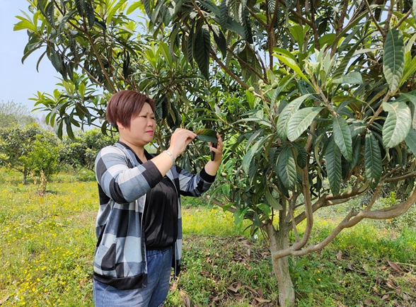 在黄许镇广平村枇杷园,村民彭先兰种植了5亩枇杷树,被区经科信局选聘为村信息员。眼下,正值枇杷挂果期,彭先兰每天穿梭在各个农户果园里,观察收集果树生长情况,并利用手机“四川科技兴村在线”APP旌阳区平台与农技专家取得联系,“点对点”“面对面”解决生产技术难题。