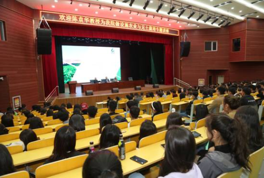 当天,陈袁华教授以“如何认识现代设施农业”为题展开《智慧农业设施——玻璃温室》的讲课,从“设施农业简述、智慧农业简述、智能玻璃温室的优势、江苏绿港案例分析”等几个方面,和600多名农业工程学院的师生们一起分享了现代设施农业知识。