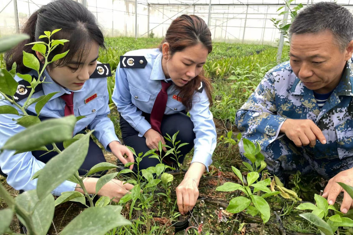 国家税务总局琼中黎族苗族自治县税务局春风行动青年志愿队到琼中绿橙种植基地进行政策辅导(央广网发 王露 摄)
