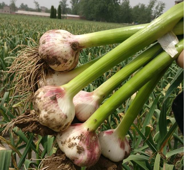 收获方法:采用人工或机械收获的方式,将大蒜植株连根拔起,然后晾晒至叶片干枯后,进行编辫或挂藏。