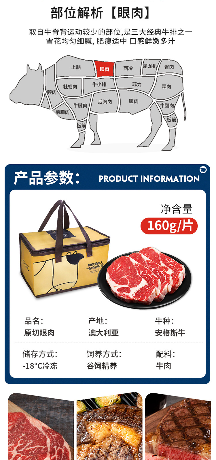 深圳市欧优源贸易有限公司发布的原切澳洲谷饲160g肉眼商用家庭无添加雪花牛扒冷冻牛排顺丰批发图集库