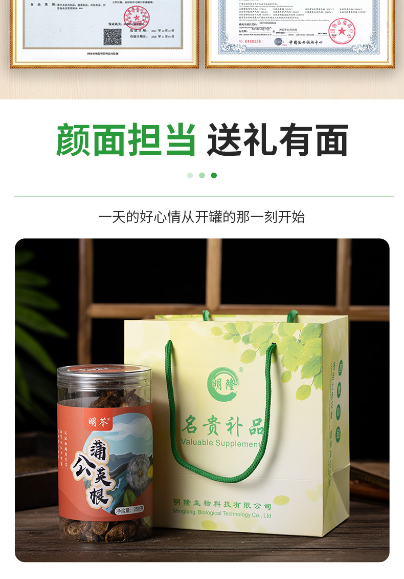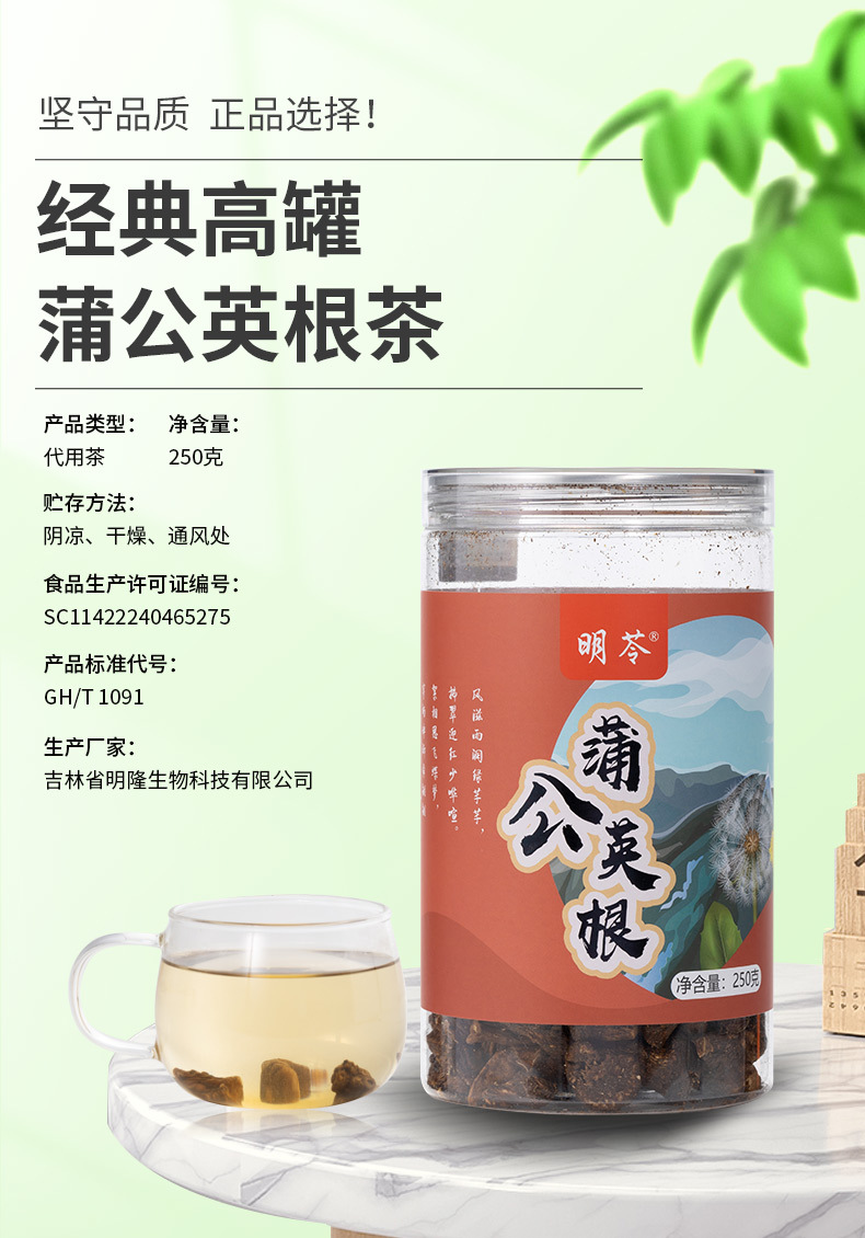 吉林省明隆生物科技有限公司发布的长白山蒲公英根茶罐装代用养生茶婆婆丁茶花果茶罐装袋装送礼家用图集库