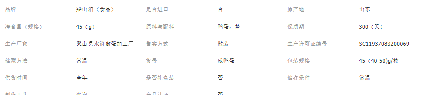 梁山县水浒禽蛋加工厂发布的山东咸鸭蛋工厂40-50克小鸭蛋即食咸鸭蛋流油商用20/30枚散装批发图集库