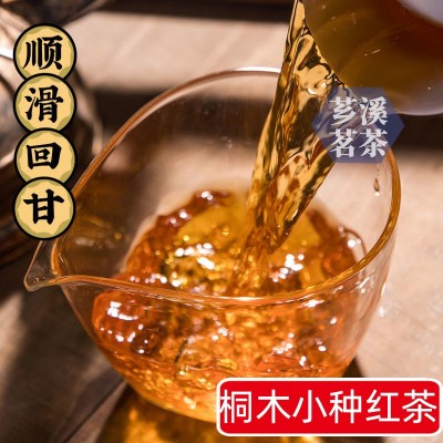 这款桐木小种红茶外形条索肥实紧结匀整,色泽乌润,泡水后汤色红浓,香气高带花香蜜香,香不强烈,细而含蓄,味醇厚甘爽,喉韵明显,汤色橙黄清明。