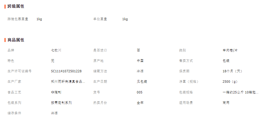 黑龙江七牧川肉业商贸有限公司发布的现货雨轩斋2.5kg圆砖草原羔羊卷 羊肉卷肥羊卷 火锅食材羊肉卷图集库