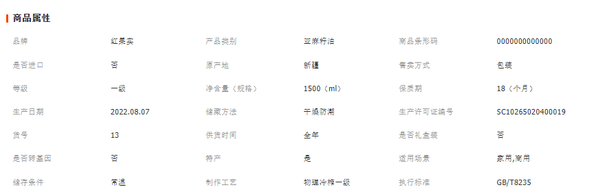乌鲁木齐惠添康食品科技有限公司发布的新疆亚麻籽油红果实有机亚麻籽油1.5升物理冷榨一级食用植物油图集库