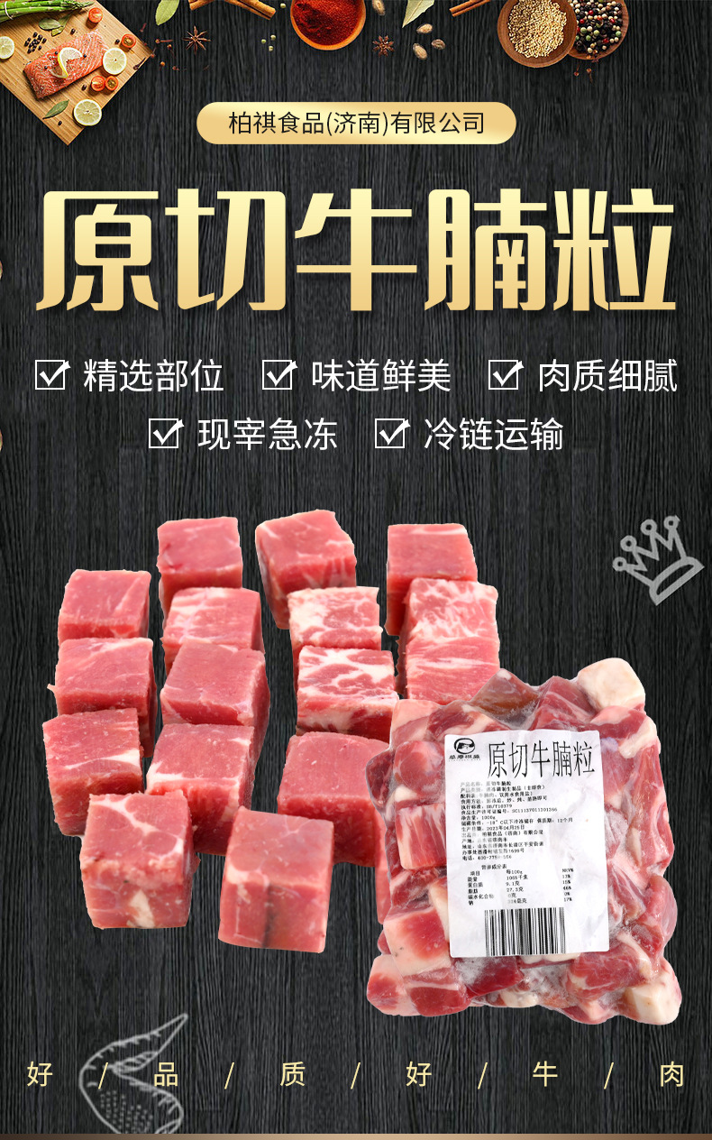 柏祺食品(济南)有限公司发布的厚切牛腩粒 新鲜牛肉冷链运输商用真空包装冷冻牛肉粒新鲜牛腩粒图集库