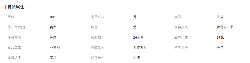 牛肉/牛排:雪花和牛、美国安格斯雪花牛小排、美国安格斯雪花牛仔骨、美国安格斯雪花牛肋骨(台塑牛排)、美国安格斯雪花牛肋排、美国安格斯雪花西冷牛排、美国安格斯雪花肉眼牛排、美国安格斯T骨牛排、美国安格斯三角肥牛、美国安格斯上脑、美国安格斯牛肋条、美国安格斯牛板腱、美国安格斯翼板肉、美国安格斯牛柳、美国雪花单层肥牛、美国雪花双层肥牛、美国安格斯牛腱子(牛展)、加拿大雪花牛小排、加拿大雪花牛仔骨、加拿大雪花西冷、加拿大雪花肉眼、加拿大T骨牛排、加拿大牛板腱、加拿大翼板肉、加拿大牛柳、加拿大上脑牛排、加拿大三角肥牛、加拿大双层肥牛、加拿大单层肥牛、澳洲和牛西冷、澳洲和牛肉眼、澳洲和牛板腱、澳洲和牛上脑、澳洲雪花牛小排、澳洲牛仔骨、澳洲西冷牛排、澳洲肉眼(眼肉)牛排、澳洲牛柳、澳洲战斧牛排、新西兰带骨肉眼、澳洲牛板腱、澳洲单层肥牛、澳洲双层肥牛、澳洲牛霖、澳洲牛腱子、新西兰上脑、牛骨髓、巴西西冷牛排、巴西牛霖、巴西牛腩、巴西牛舌、乌拉圭牛舌、乌拉圭牛胸口油、牛尾、国产肉眼、国产S级牛柳;
