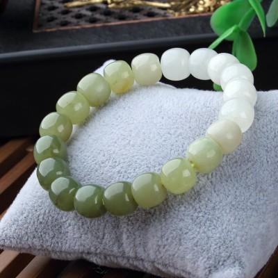 新疆和田玉渐变手链 黄口料 和田玉晴水渐变 和田青玉手链批发