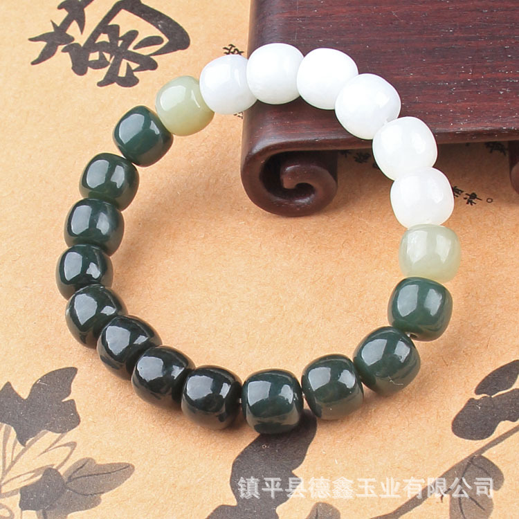 镇平县德鑫玉业有限公司发布的新疆和田玉渐变手链 黄口料 和田玉晴水渐变 和田青玉手链批发图集库