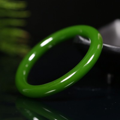 镇平县金玉搏大玉器工艺厂发布的新疆和田菠菜绿碧玉手镯圆条细条菠菜绿细圆条少女款玉手镯子图集库