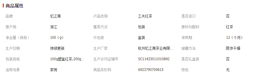 杭州忆江南茶业有限公司发布的忆江南正品 茶叶PVC盒装中小叶工夫红茶100g塑盒红茶小袋图集库