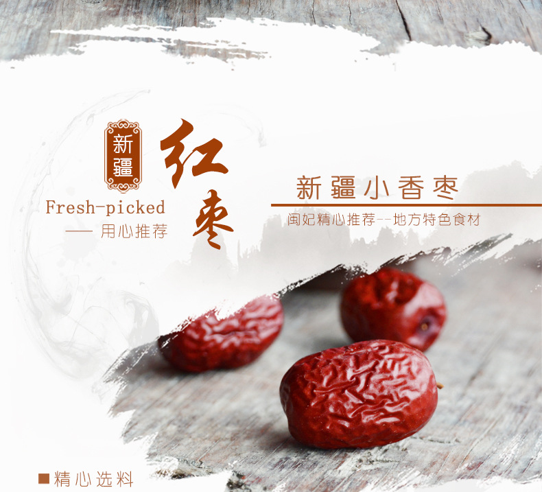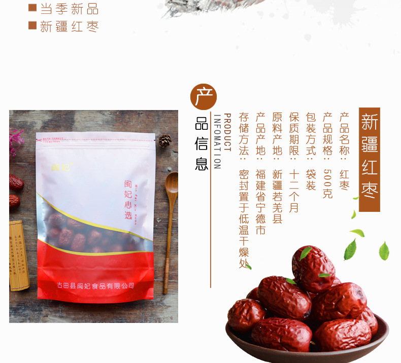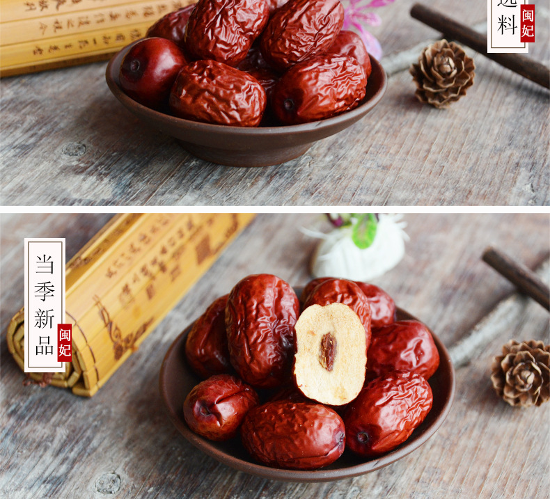 古田县闽妃食品有限公司发布的闽妃新疆红枣灰枣500g 农家特产小香枣子肉厚休闲零食 非和田大枣图集库