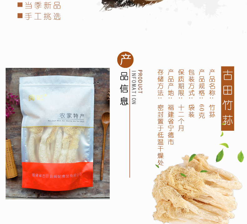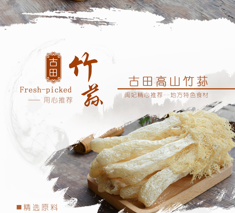 古田县闽妃食品有限公司发布的闽妃古田竹荪干货60g 新货福建农家特产竹孙竹笙菌菇 非500g图集库