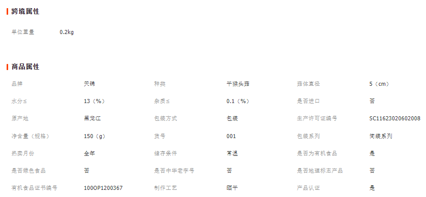 大兴安岭天锦食品有限公司发布的天锦山水袋有机猴头菇150g东北猴头菇大兴安岭菌菇干货厂家批发图集库