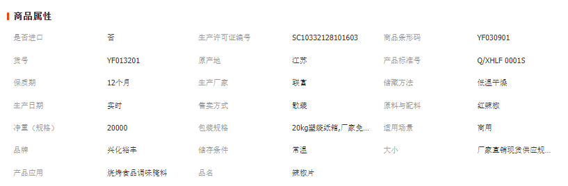 品名:辣椒片 | 配料:辣椒 |