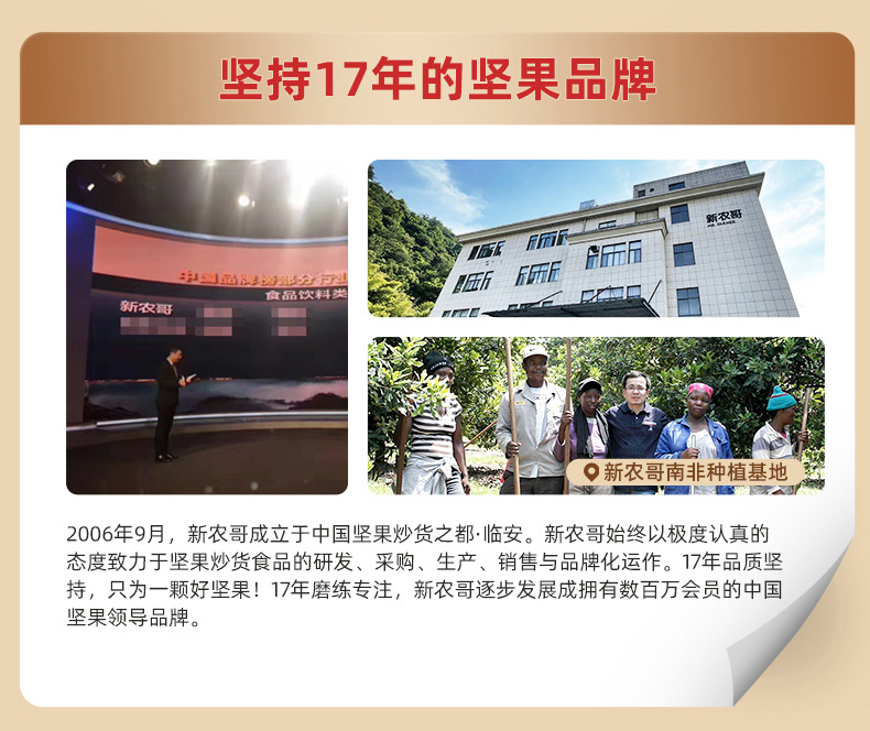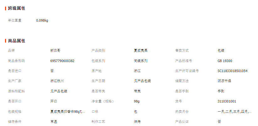 杭州勤耕食品科技有限公司发布的新农哥夏威夷果奶香味98gT袋装批发休闲零食坚果货80包箱一件代发图集库