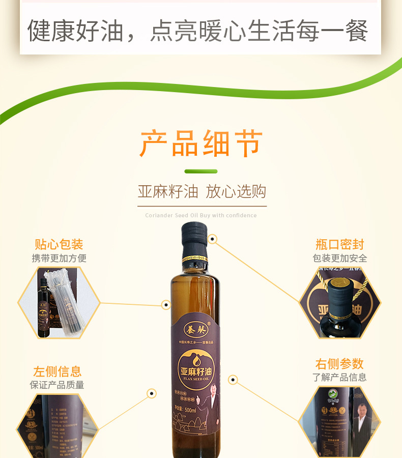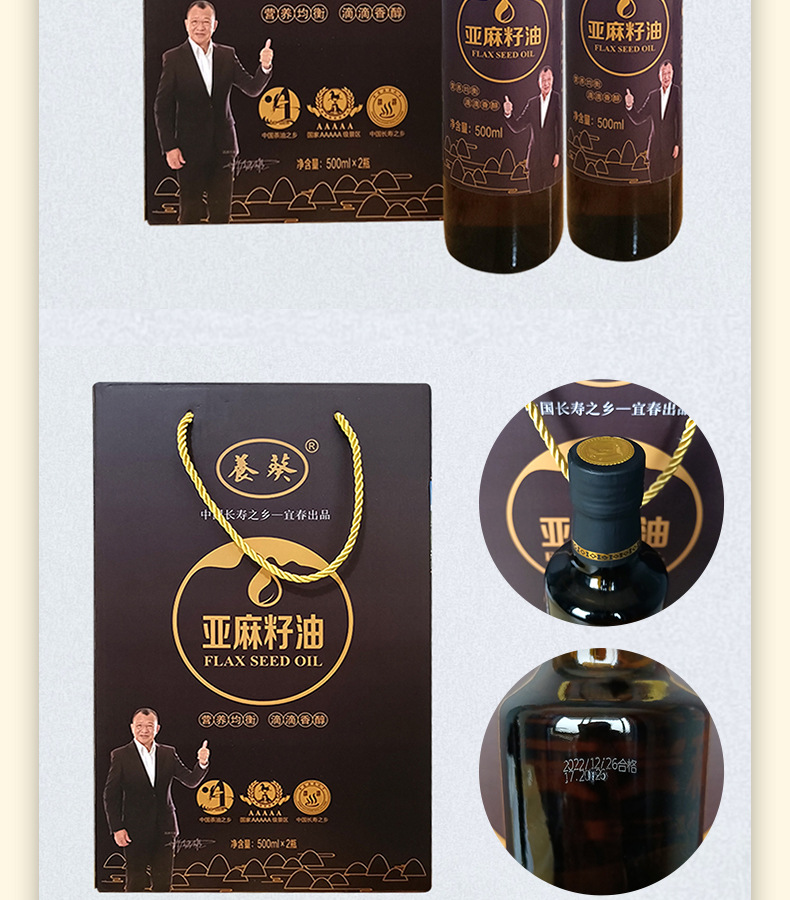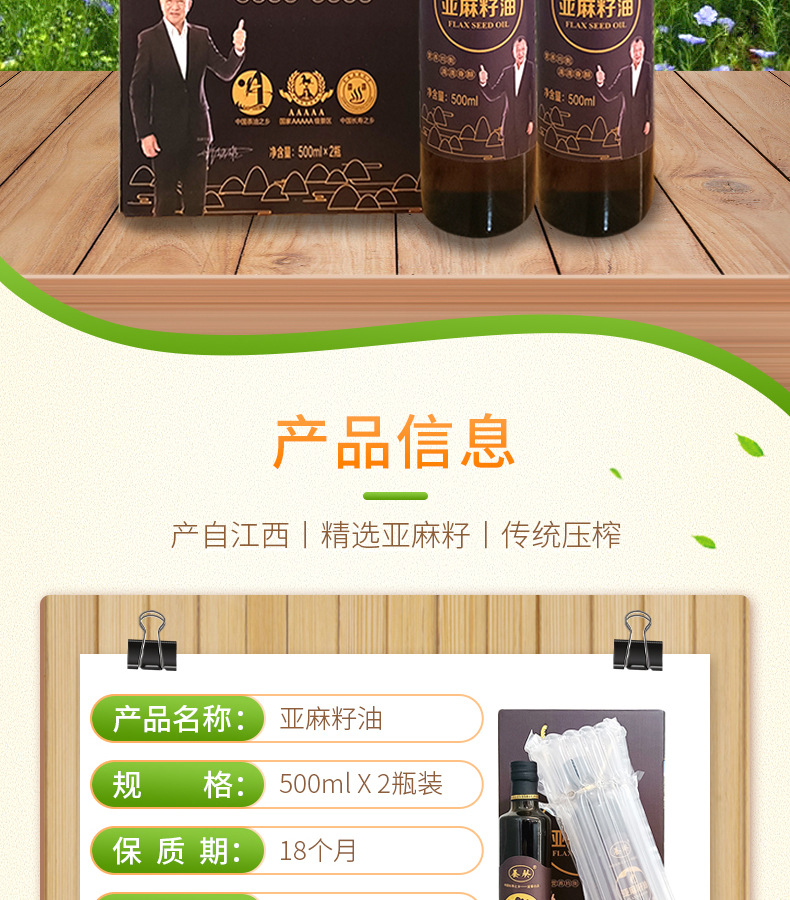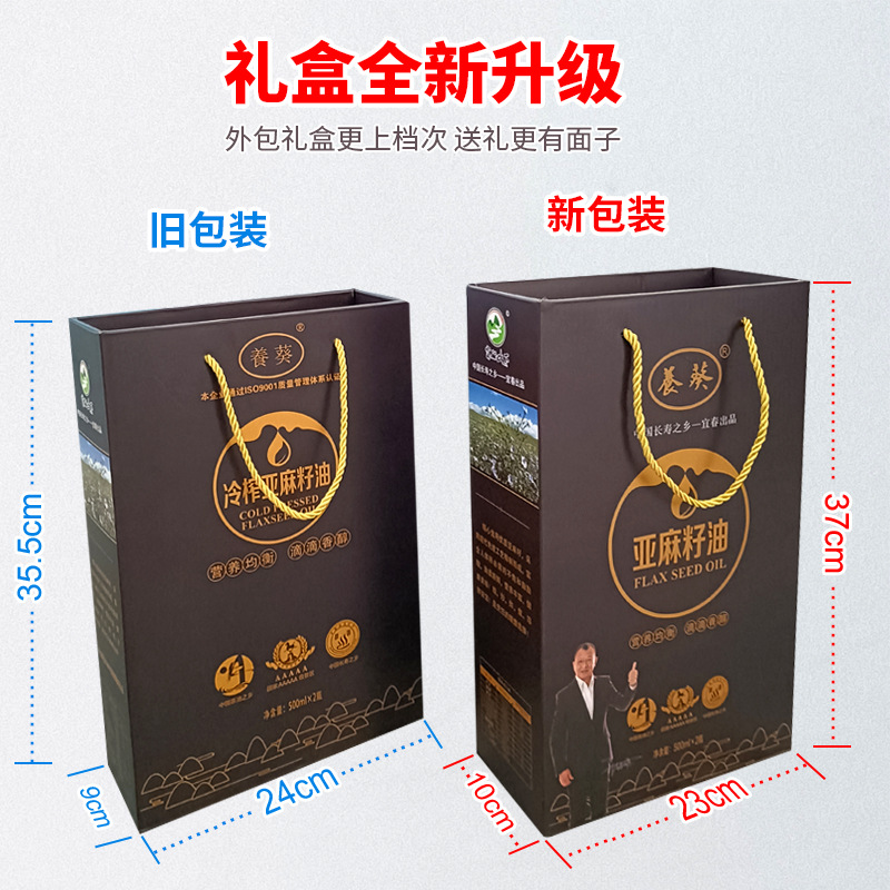 宜春富硒山下食品有限公司发布的亚麻籽油一级冷榨植物油500ml礼盒装活动礼品家用食用油批发图集库