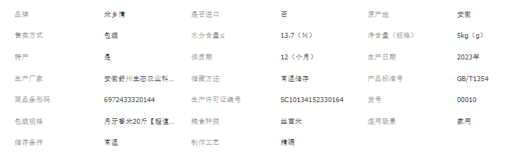 安徽米乡情农产品销售有限责任公司发布的米乡情月牙香米20斤晚稻现磨一级丝苗米 推荐企业采购商用10KG图集库