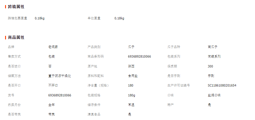 规格:180克 | 系列:普通南瓜子系列 | 配料表:南瓜子、食用盐 |