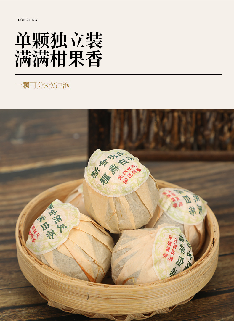 江门荣兴科技有限公司发布的福鼎白茶小青柑现货批发500g散装新会陈皮柑白茶甘甜醇滑一粒一泡图集库