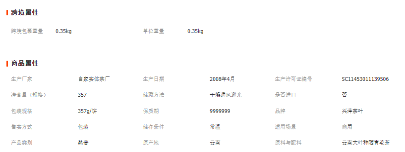 【产品规格】:357G/饼