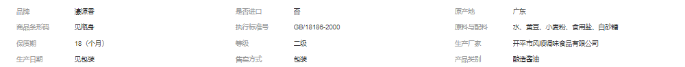开平市风顺调味食品有限公司发布的濠源香 1.6L东北大豆酿造酱油家用酒楼 凉拌炒菜拌面味鲜调味料图集库