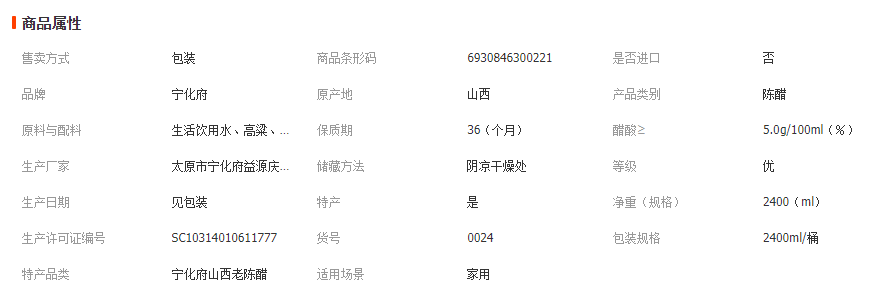 太原市天之味食品有限公司发布的一件代发山西老陈醋山西特产酿造食醋 宁化府益源庆醋2.4L老陈醋图集库