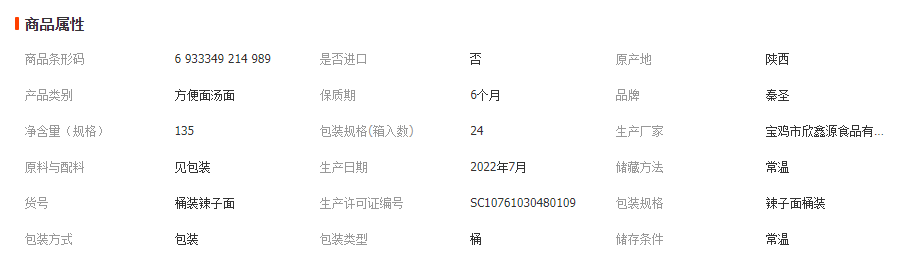 宝鸡市欣鑫源食品有限公司发布的秦圣宝鸡岐山辣子面杯装方便速食包邮支持代发一箱24桶图集库