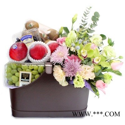 由*花艺师设计特式插花,配合新鲜进口水果,无论送礼或慰问,都非常适合。
