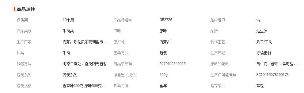满洲里市达生源食品有限公司发布的内蒙古特产风干黄牛肉干500g原味香辣味休闲零食手撕牛肉 散装小吃图集库
