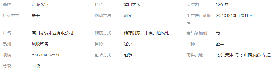 营口志诚米业有限公司发布的志诚米业 营实品牌系列 新鲜大米 蟹田珍珠米 5KG 10斤图集库