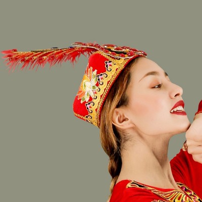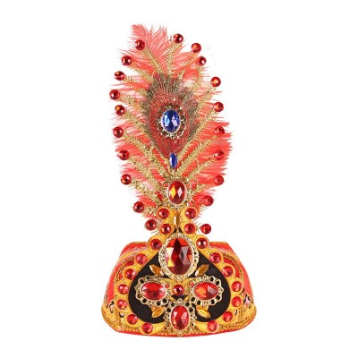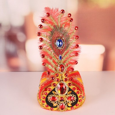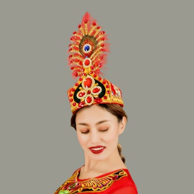 义乌市曼飞服饰有限公司发布的维吾尔族头饰正宗新疆舞女士帽子高档钻帽大羽毛舞帽维族舞演出帽图集库