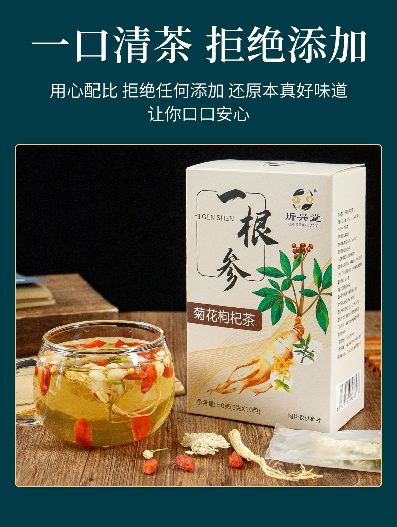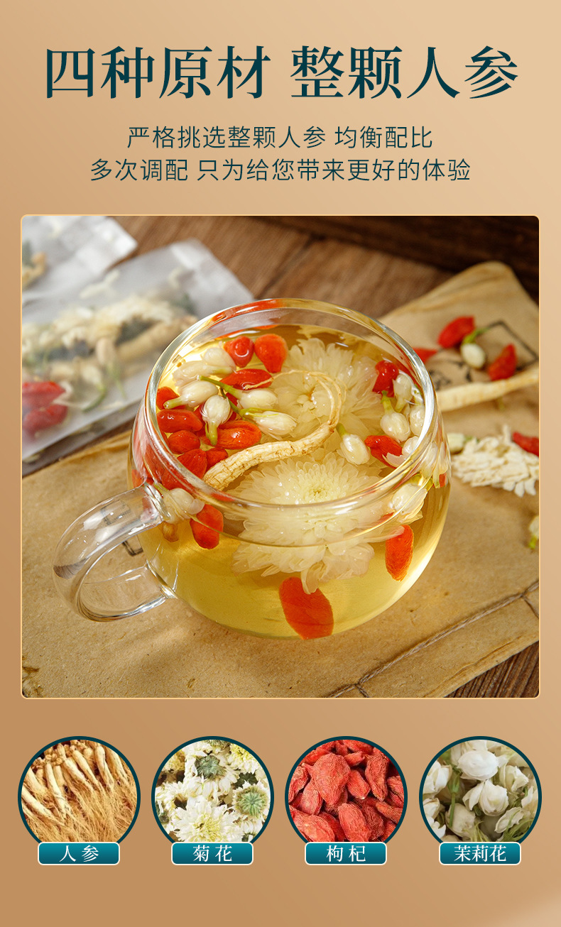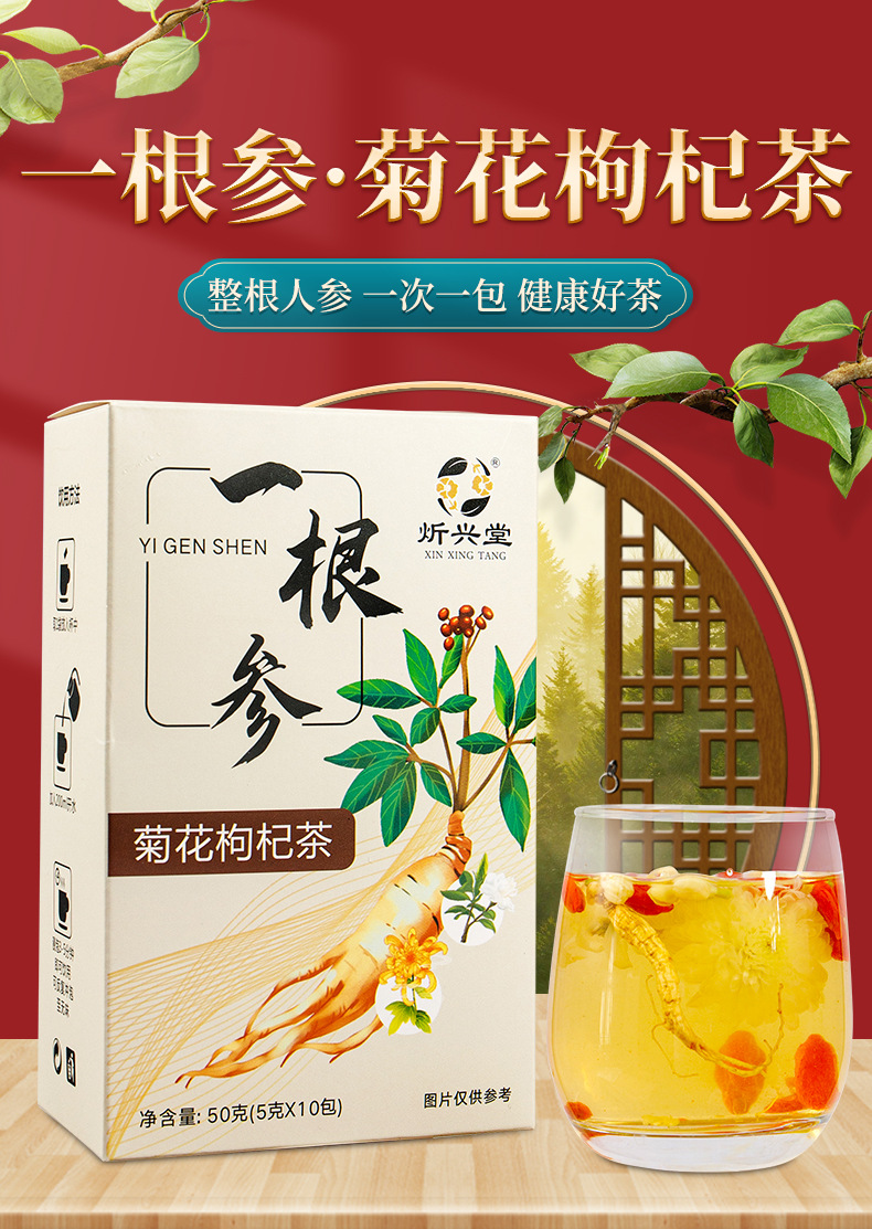 安徽省炘兴堂药业有限公司发布的批发一根参整根人参熬夜一根参茶养生滋补菊花茉莉枸杞抖音同款图集库