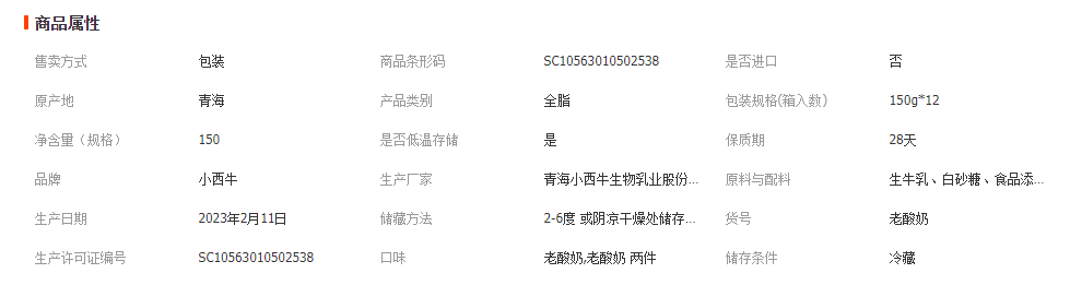 青海小西牛生物乳业股份有限公司发布的小西牛 青海老酸奶原味益生菌发酵乳150g*12图集库