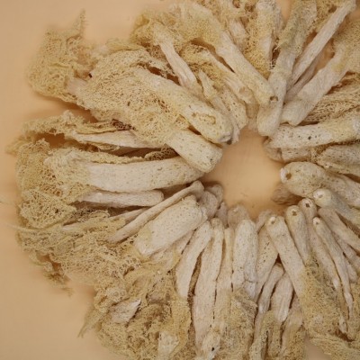 采收6-8成熟鲜竹荪,剪脚,三段式变温抛光、入味、电热脱水烘干,酥脆适口,香味浓郁,烹饪汤菜优质食材。