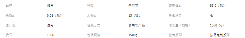 湘蕈竹荪干货6-8成熟采收、剪脚、烘干一站式完成,原色无硫磺,菇杆脆,菌群呈淡黄色,气味芬芳,味道醇正。杂质含量≤1%。