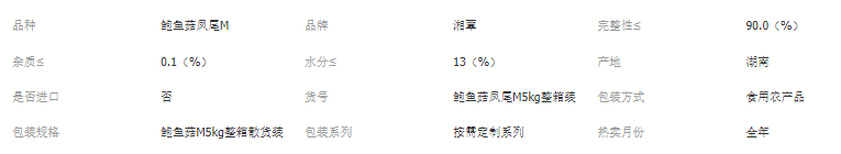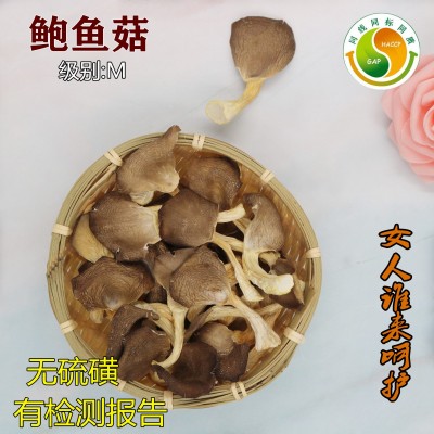 湘蕈鲍鱼菇干货按大小分级,采收、剪脚、烘干一站式完成,色泽淡黄,杂质含≤1%。
